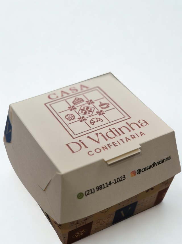 - Proteção reforçada: fabricada em papel cartão 250g, mantém hambúrgueres e bolos bem acondicionados, preservando sabor e apresentação até o cliente.