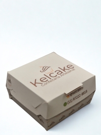 Caixa de Papel Cartão para Hambúrguer P (10,5cm largura × 10,5cm comprimento × 6cm altura) – Também para doces como slice cakes, brownies, cookies - Impressão Colorida Ilimitada – Gramatura 250g